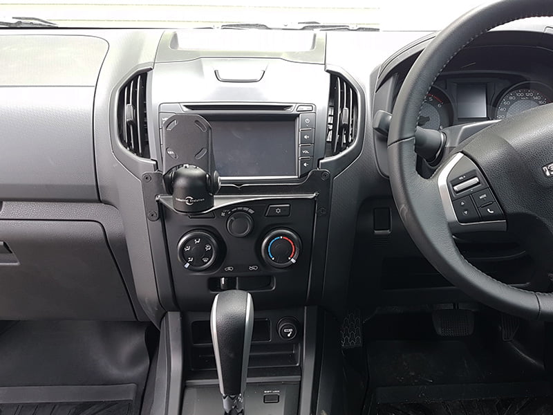 The Isuzu D-Max (2012-17) InDash Mount sits securely between the car's air conditioning and stereo controls, giving both driver and passenger unobstructed access to all the car's creature comforts. It utilises existing secure mounting points behind the car's dashboard, so there's no need for drilling or cutting!
