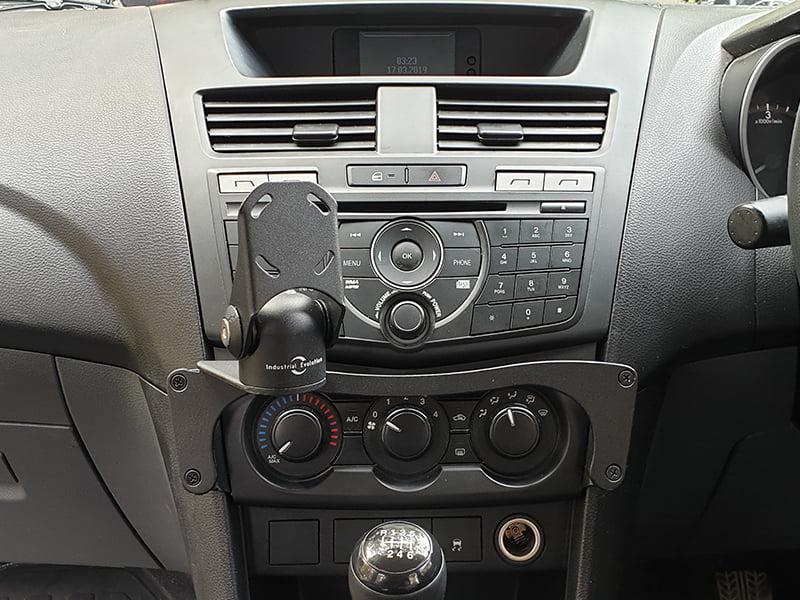 The Mazda BT50 InDash Mount (2012+) sits securely around the car's multimedia controls and digital display. Gives both driver and passenger access to all the car's creature comforts. Designed to use existing secure mounting points behind the BT-50 dashboard. No need for drilling or cutting!