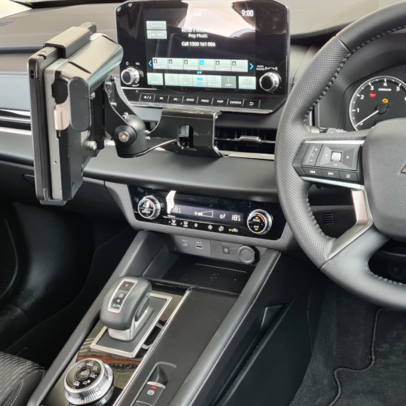 The Mitsubishi Outlander (2022+) InDash Mount is a car dash mount which sits safely around the car's multimedia controls and digital display. Gives both driver and passenger easy access to all the car's creature comforts. Using existing secure mounting points within your Outlander's dashboard, there is no need for drilling or cutting!