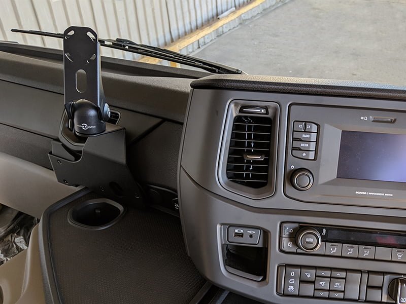 The Scania P320Â CP28L (2018+) InDash Mount is a rugged, full-metal truck dash mount. The custom design gives both driver and passenger easy access to all the truck's controls and displays. Designed to use existing secure mounting points behind the Scania P320 dashboard. No need for drilling or cutting!