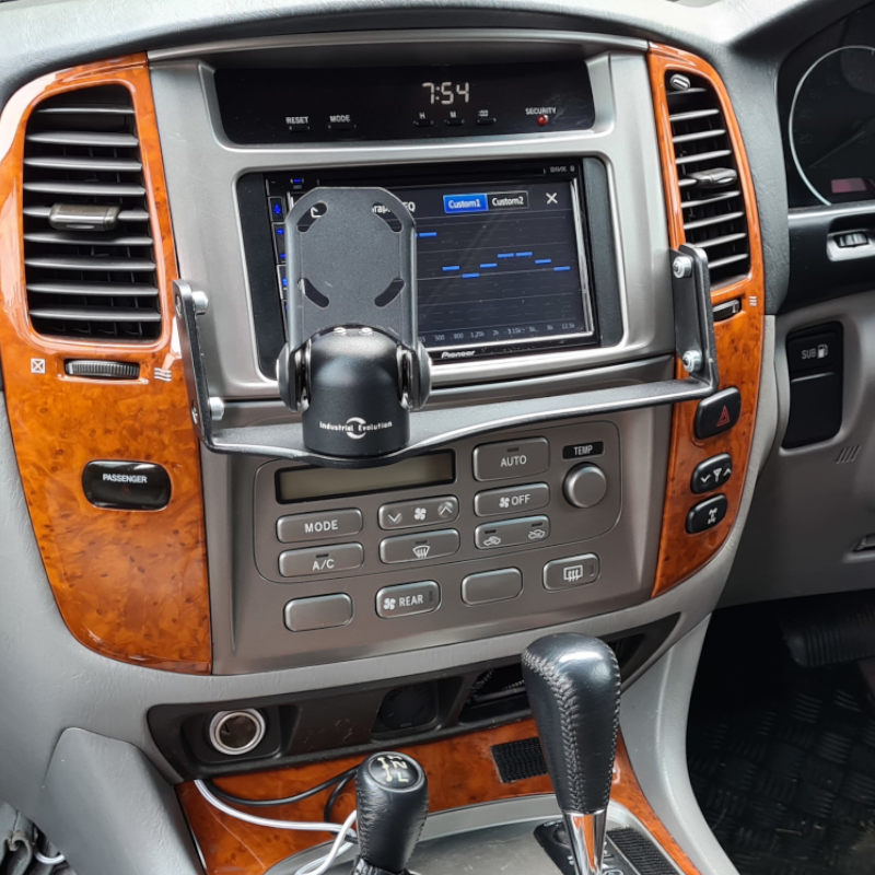 The Toyota LandCruiser 100/105 (2003-07) InDash Mount sits securely around the car's multimedia controls and digital display, giving both driver and passenger unobstructed access to all the car's creature comforts. It utilises existing secure mounting points behind the car's dashboard, so there's no need for drilling or cutting!