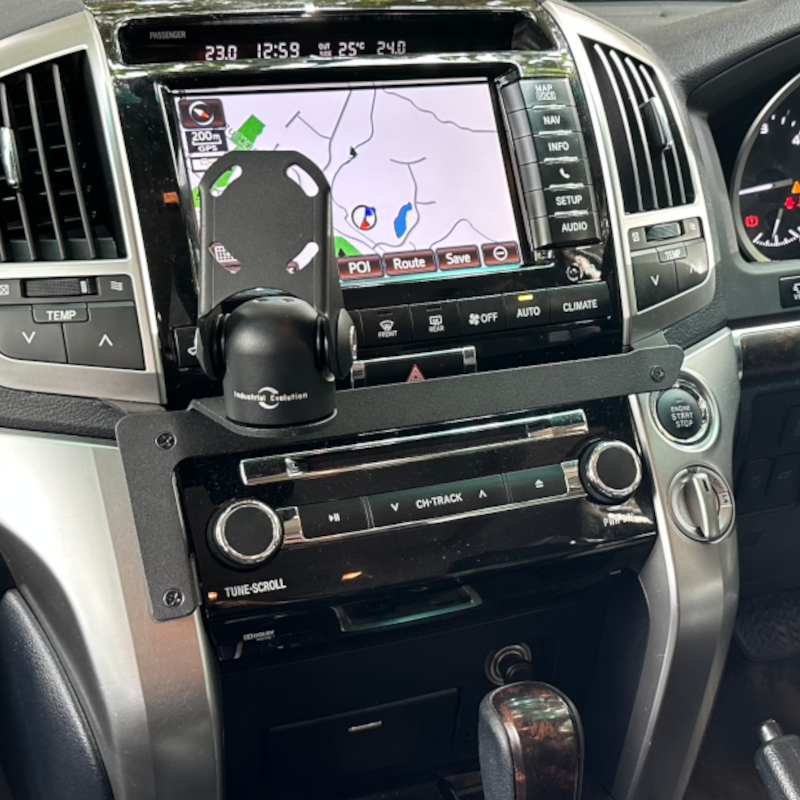 The Toyota LandCruiser 200 (2008-15) Sahara, VX InDash Mount sits securely around the car's multimedia controls and digital display, giving both driver and passenger unobstructed access to all the car's creature comforts. It utilises existing secure mounting points behind the car's dashboard.