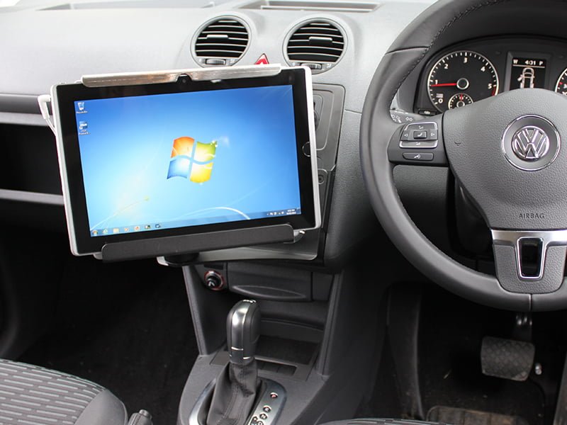 The Volkswagen Caddy (2010-13) InDash Mount sits securely around the car's multimedia controls and digital display, giving both driver and passenger unobstructed access to all the car's creature comforts. It utilises existing secure mounting points behind the car's dashboard, so there's no need for drilling or cutting!